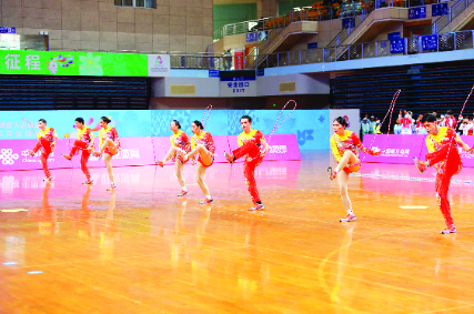 残特奥会跳绳(大众)项目视力组集体花样赛现场。
