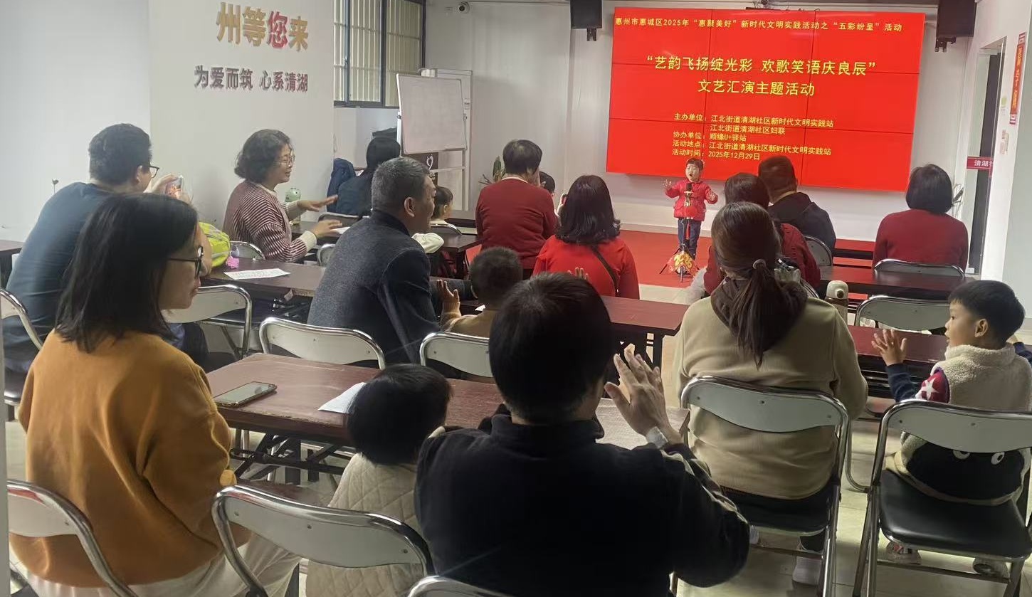 岁末寒冬,温情蔓延。为传承中华优秀传统文化,丰富辖区居民精神文化生活,筑牢邻里温情纽带,连日来,惠城区江北街道清湖社区、惠新社区相继开展元旦文艺汇演、马年主题长画涂鸦等特色活动,以多元形式点燃新年氛围,让居民在互动参与中感受关怀,共同迎接崭新的一年。