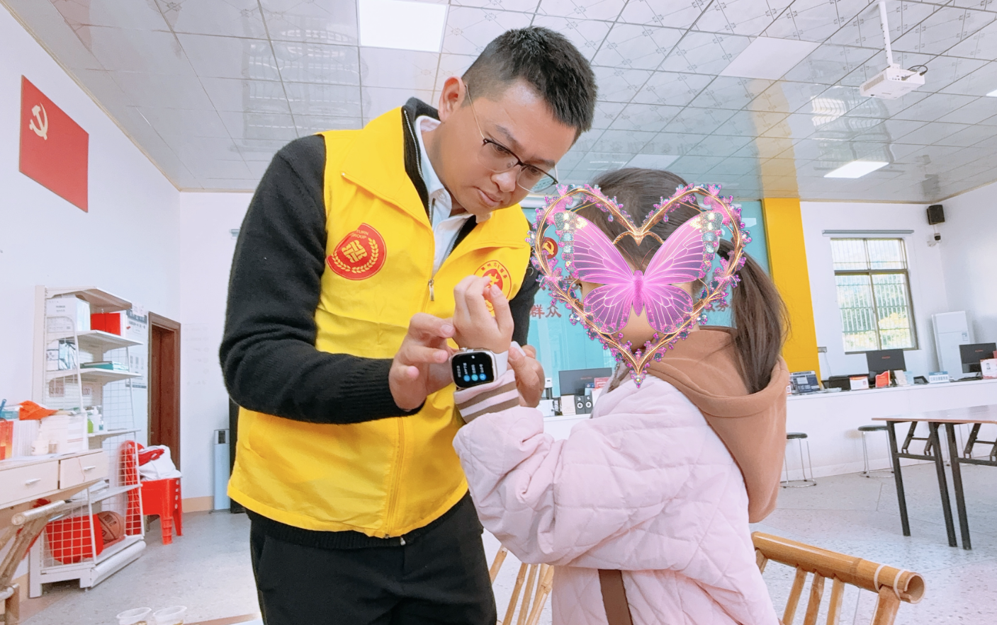 当崭新的电话手表递到张同学手中时,她的脸上瞬间绽放出灿烂的笑容。面对不会安装的难题,同行的六年级志愿者杨振坤主动上前帮忙:“小妹妹,我有电话手表,我知道怎么装,我来帮你!”熟练安装完毕后,杨振坤还细心地为张同学戴上。“谢谢哥哥!我也有电话手表了!”稚嫩的道谢声中,满是收获温暖的喜悦。