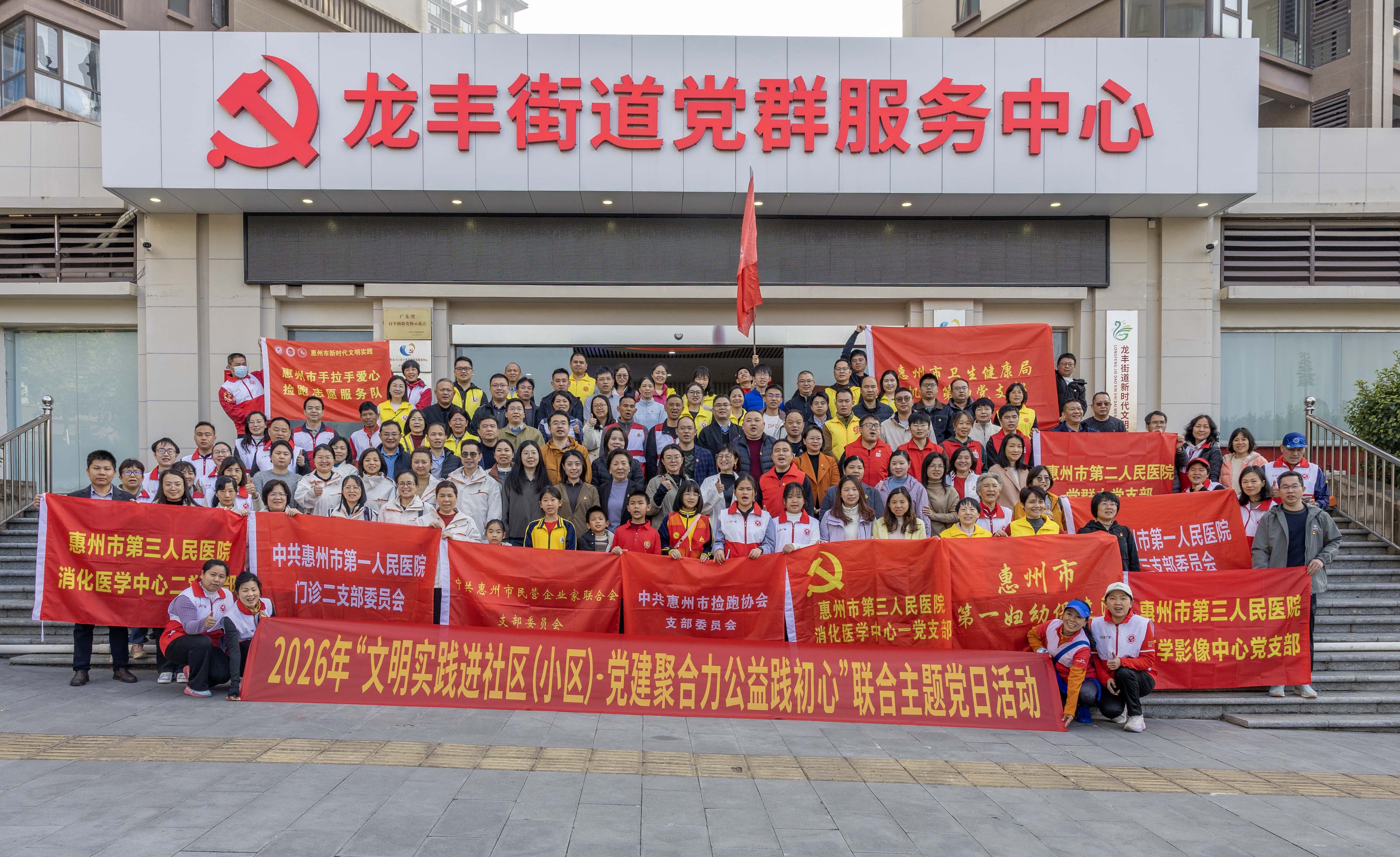 2026年1月25日,“文明实践进社区(小区)·党建聚合力 公益践初心”联合主题党日活动在龙丰街道举办。活动由中共惠州市社会组织委员会、龙丰街道党群服务中心等单位联合主办,十余所医疗单位党支部协办,活动以“宣讲+实践+服务”多元模式,将党建力量转化为文明实践与民生服务实效。