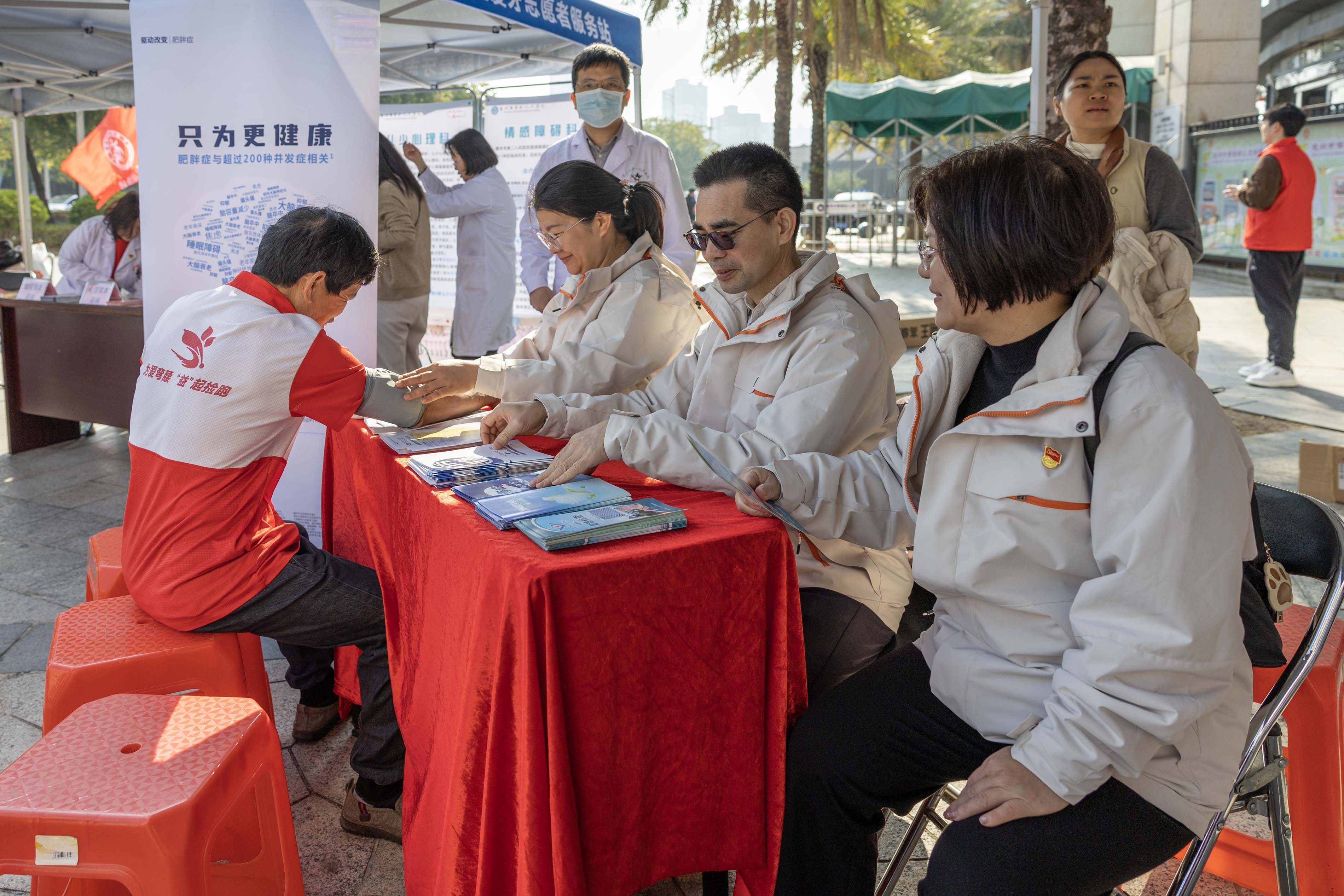 在金榜山社区1号门,惠民健康服务同步开展。十余所医疗单位的党员医护志愿者提供内科咨询、中医适宜技术、糖尿病防治、儿童保健等便民服务,耐心问诊查体、传授健康知识,让居民在家门口享受优质医疗资源,切实感受文明实践带来的民生温度。