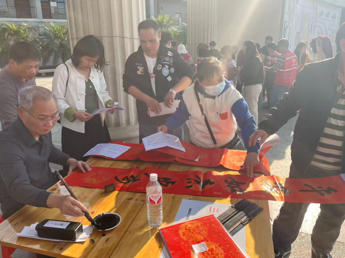 1月27日下午,惠城区水口文化体育中心舞台前人头攒动、墨香弥漫。为弘扬中华优秀传统文化,营造祥和温馨的节日氛围,水口街道联合惠城区书法家协会,共同举办“翰墨迎新春 福字送万家”迎新春送春联活动,在笔墨流转中传递祝福,也传递着文明与安全的理念,也为即将到来的新春增添了浓厚的文化年味。