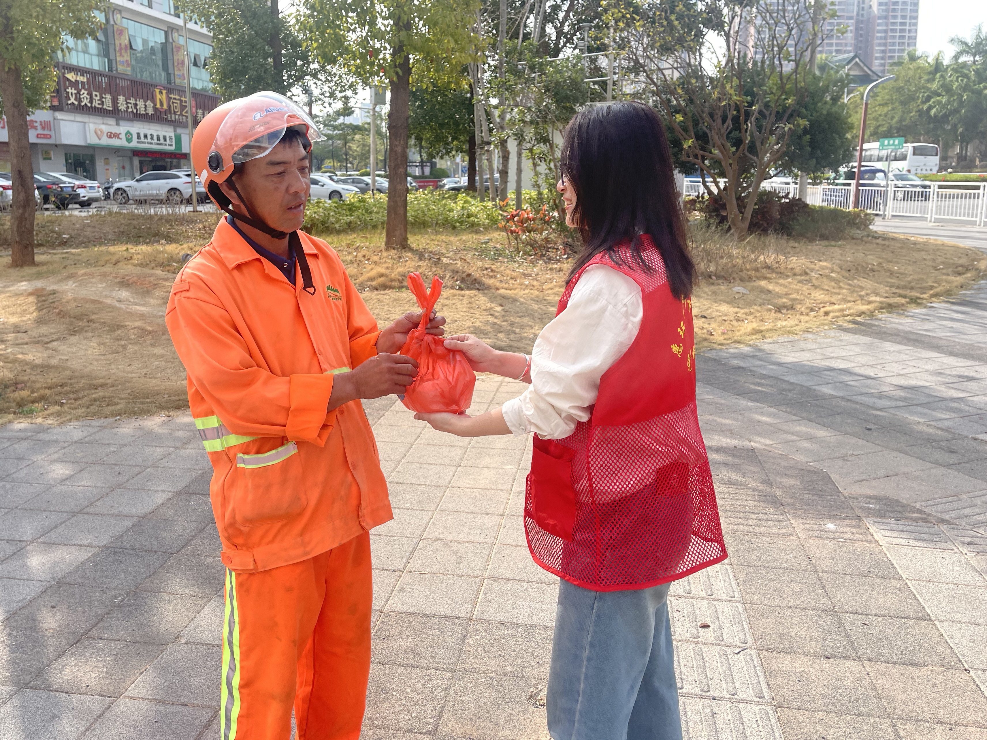 过年万家团圆时,辖区环卫工、快递员、社区民警、物业安保等一线工作者依旧坚守岗位、守护社区安宁。除夕当天,社区工作人员将提前煮制打包整齐的饺子、汤圆,搭配精心书写的春联,逐一送到一线工作者手中。一句句祝福传递温情,让一线守岁人感受到社区大家庭的温暖,用小关怀彰显大担当。