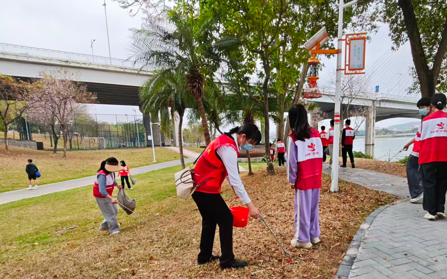 本次活动是新城社区2026年春节后的首场志愿公益活动,也是社区常态化推进生态环保志愿服务、打造“绿色宜居、文明和谐”社区品牌的具体实践。活动现场,在领队人的积极号召与有序组织下,30余名志愿者精神饱满、热情高涨。他们身着红马甲,手持清洁工具,沿着江河沿岸开启“捡跑”模式,一边慢跑健身,一边弯腰捡拾沿途的塑料瓶、纸屑、烟头等垃圾。志愿者中既有童心向暖的中小学生、朝气蓬勃的大学生,也有热心奉献的家长志愿者,大家分工协作、默契配合,用实际行动清理环境死角,守护江河生态。他们忙碌的身影,成为春日里一道亮丽的风景线,充分展现了新城社区志愿者队伍的凝聚力与向心力。