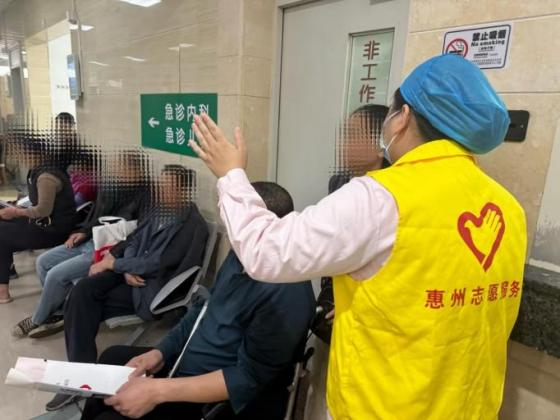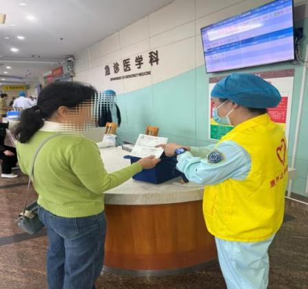 作为惠州市“青年文明号”集体,医院急诊医学科坚持将志愿服务融入日常工作的点滴之中。在急诊候诊区、检查通道等关键点位,志愿者们主动上前、耐心引导,协助行动不便、无陪护患者完成就诊、陪检、转运。同时,利用候诊间隙,为患者普及急救知识,让志愿服务成为急诊一道温暖风景线。