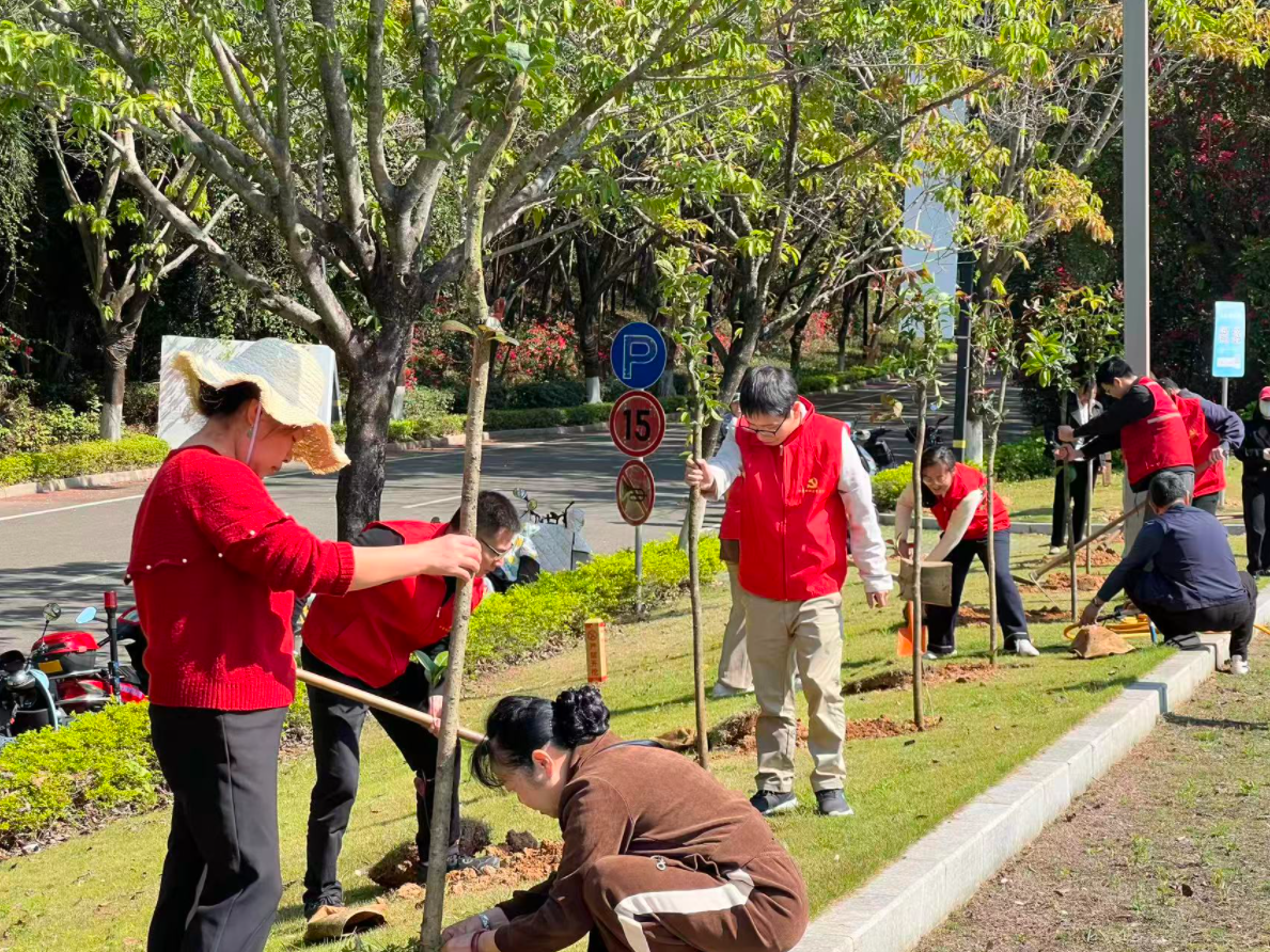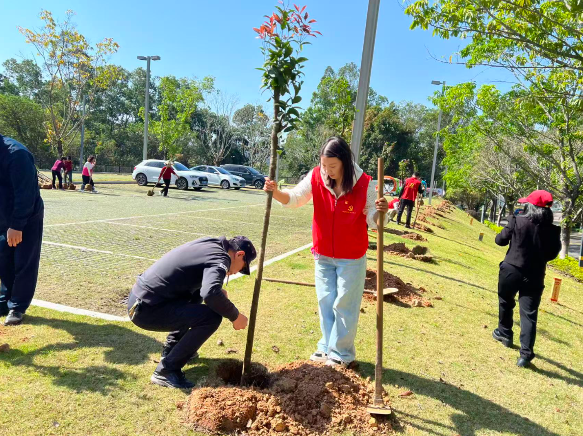 日前,惠城区汝湖镇白鹭湖社区组织开展“党建引领添新绿,党群同心美家园”主题植树活动。社区党员干部、居民群众及志愿者参加活动,以实际行动为美丽家园增添新绿,谱写党群共建生态文明的新篇章。
