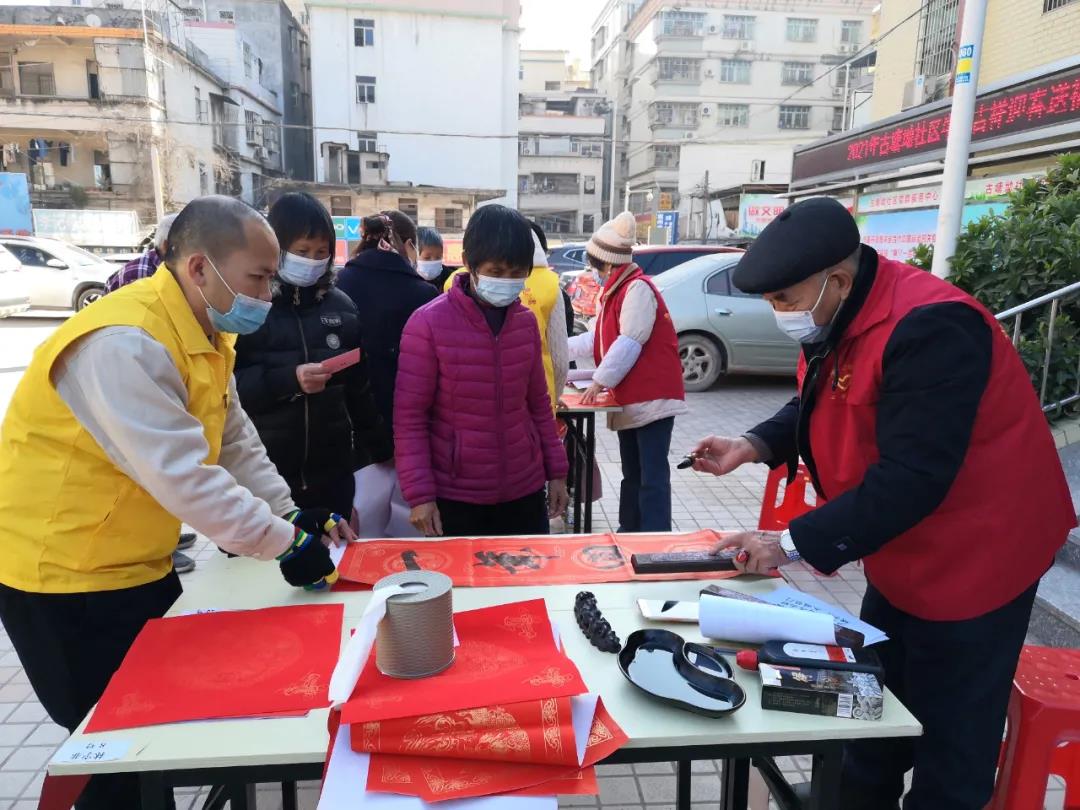 此次活动不仅让社区居民感受到了浓浓的年味,也给居民送上了美好的新年祝福,营造了社区文明、祥和的节日气氛。黄阿婆拿着写好的春联,走到社工跟前说:“这个活动好!过年写春联、贴春联,是我国的传统风俗,我们要传承!感谢社区在严冬中邀请书法家们为我们开展服务!”(古塘坳社区 仲恺志愿服务联合会)