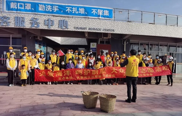 2020年1月30日上午9点, 惠州大亚湾区蔚蓝公益协会组织近30家亲子家庭志愿环保小组在大亚湾霞涌黄金海岸开展“保护蔚蓝-童心护海洋“传承海洋文明亲子净滩志愿活动。