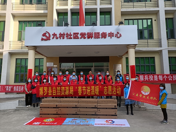 辞旧迎新又一年,伴随着2021年新春的到来。为了让社区三无老人、残障人士、低保困难家庭度过欢乐、祥和、喜庆的新春佳节。2021年2月3日上午,九村社区党总支部携手共建单位博罗县自然资源局党支部、社区志愿服务队、九村社区综合服务中心幸福社工共同开展【新时代文明实践】“三工”联动—“春节送温暖”慰问活动。