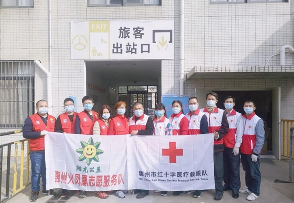 2021年2月12日惠州红十字医疗救援队和阳光公益志愿服务队的志愿者们仍然坚守在南线客运站出口的联合检疫岗位上,演绎了“春节志愿无休,守护平安鹅城”舍小家为大家,坚守防疫第一线,为平安惠州筑起一道坚固的城墙。2020年防“疫”战中并肩同行的战友,在2021“暖冬行动”新年第一天再次携手,为保惠州一方平安甘愿“舍小家为大家”一起志愿为民服务甘做孺子牛!
