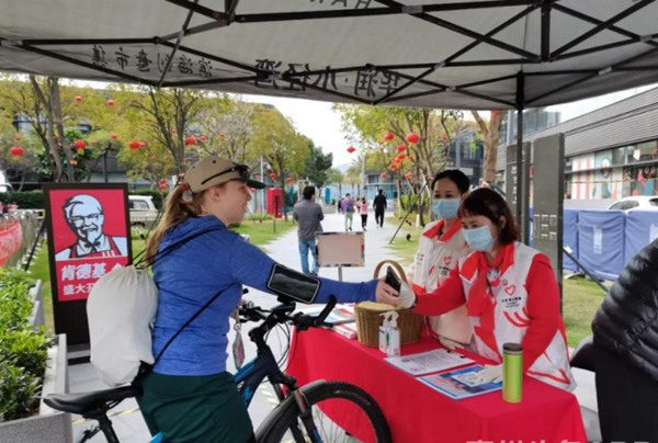 志愿者在华润小径湾开展志愿服务。图片来源:惠州报业全媒体记者 匡湘鄂