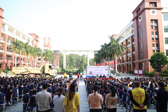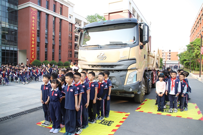 讲师从道路交通安全状况、涉及学生的交通事故发生原因、自身安全防护、文明参与交通四个方面进行了讲解,指出遵守交通法规、安全行车走路的重要性,教育学生在日常出行中,要养成安全文明出行的良好习惯,并通过有奖问答的形式,让学生参与竞答,充分调动学生的学习积极性。现场通过场景体验教学,重点讲解了大车盲区的内容,数十名学生站在大货车四周布置的盲区示意图上,坐在驾驶室上的学生感受的却是大货车的“无人”视野,让广大学生亲身了解到大车盲区的危险性,谨记远离大车。