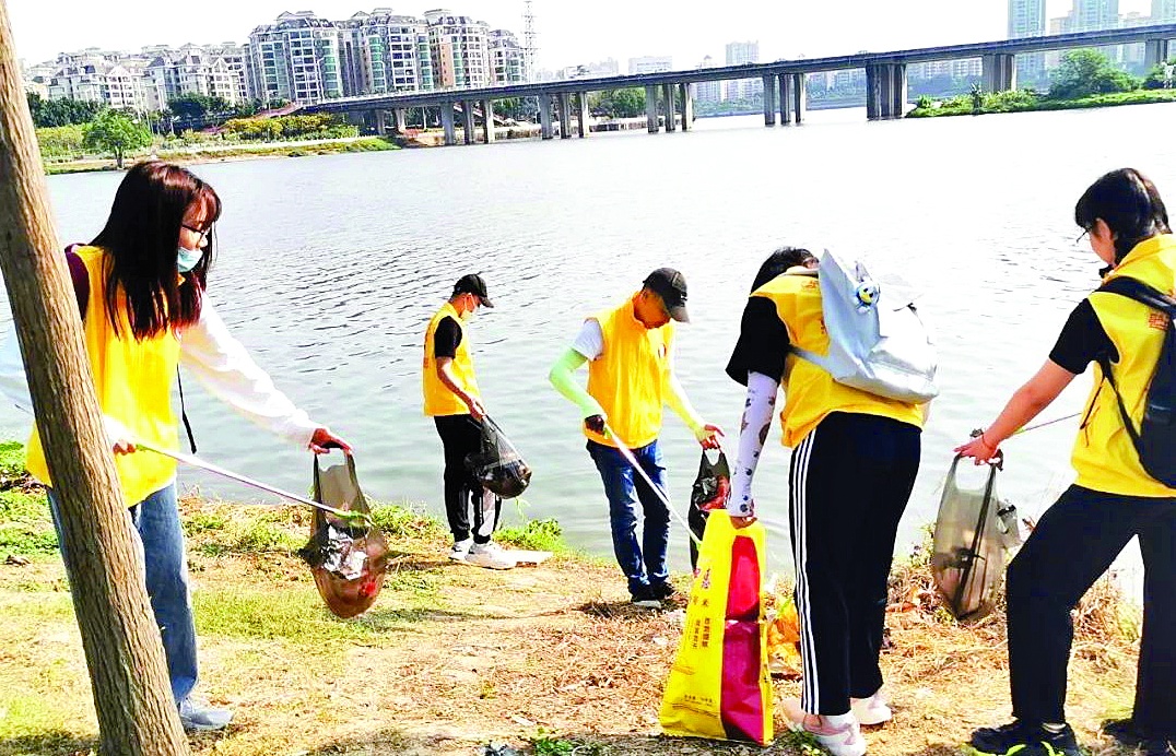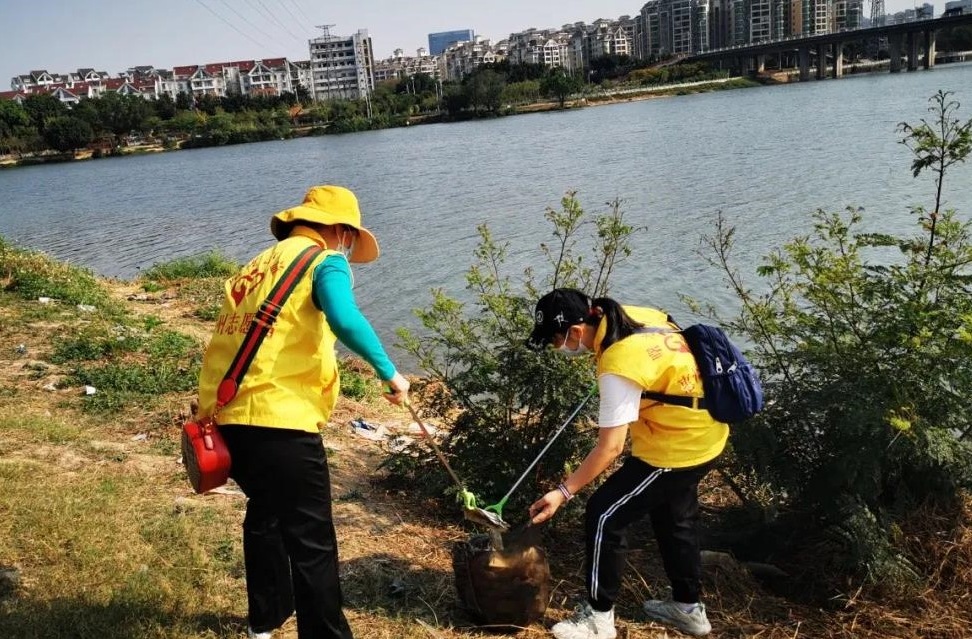 志愿者清洁河滩环境卫生。(摄影 马海菊)