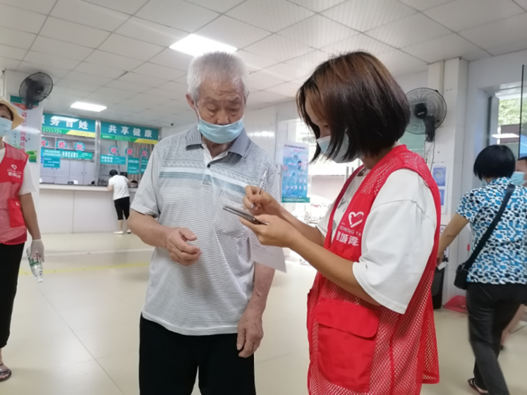 7月2日下午,惠城区河南岸社区卫生院疫苗接种点迎来首批60岁以上的老人疫苗接种,市义家人志愿服务队志愿者们和医护人员在现场全程为接种疫苗的老人们“保驾护航”。