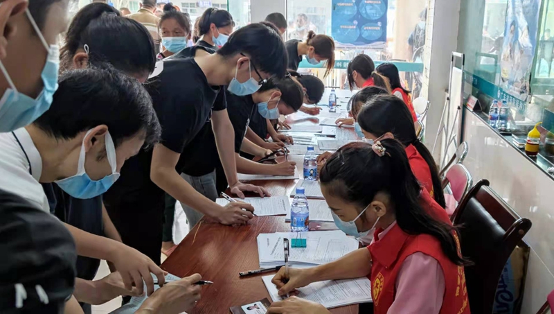 8月1日是惠州市12-17岁儿童开打疫苗的第一天,8点钟未到,博罗县麻陂镇卫生院已排起长长的队伍,麻陂社区青少年先锋志愿服务队和麻陂镇卫生志愿服务队15名志愿者在幸福社工麻陂社区“三社联动”社工站2名社工的带领下,一大早赶来支援疫苗接种,急群众所急,为现场群众提供维持秩序、指导填表和问答释疑等暖心、贴心服务,为有序、顺利、高效完成接种贡献了志愿者力量。