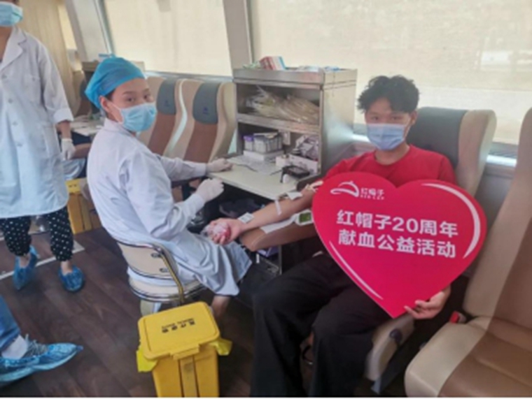红帽子一直秉承“做有良心、有社会责任感的阳光企业”核心理念,始终将社会责任放在第一位。鼓励员工和引导很多客户以及社会人士,员工积极加入献血志愿者队伍,把爱心一直传递下去。