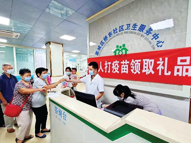 桥东开展“打疫苗赠送礼品”活动。 惠州日报记者谢菁菁 特约通讯员陈少驹 通讯员郑逸弢 摄