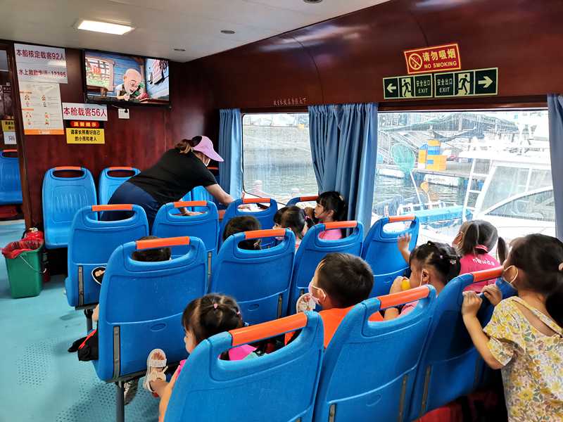 “船上坐的都是孩子和老师,我们一刻都不敢掉以轻心,时刻将安全放在首位。”梁伯坤说,船上灭火器、救生衣等救援设备均严格按标准配备,船上配置有船长、轮机长、船员和护工等6名工作人员,而且这些工作人员都是澳头飞帆、前进等渔村村民,都有着丰富的船上工作生活经验。