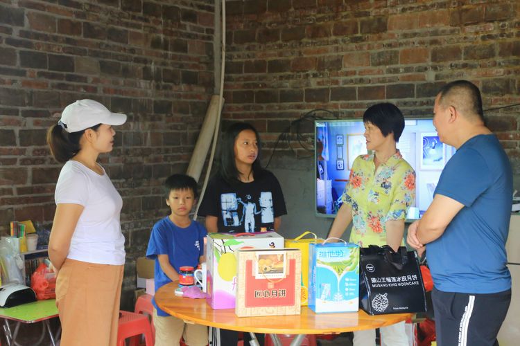“香姐,我们来看看你啦”黄队长提着爱心大礼包,一边向香姐详细说明爱心物资,一边把慰问金、月饼送到香姐手里。大家围坐在一起亲切地交谈,聊聊家常、唠唠收成、关切询问子女工作收入、嘱咐她要保重身体等等,点点滴滴的爱和关怀,让香姐对美好生活充满了希望。