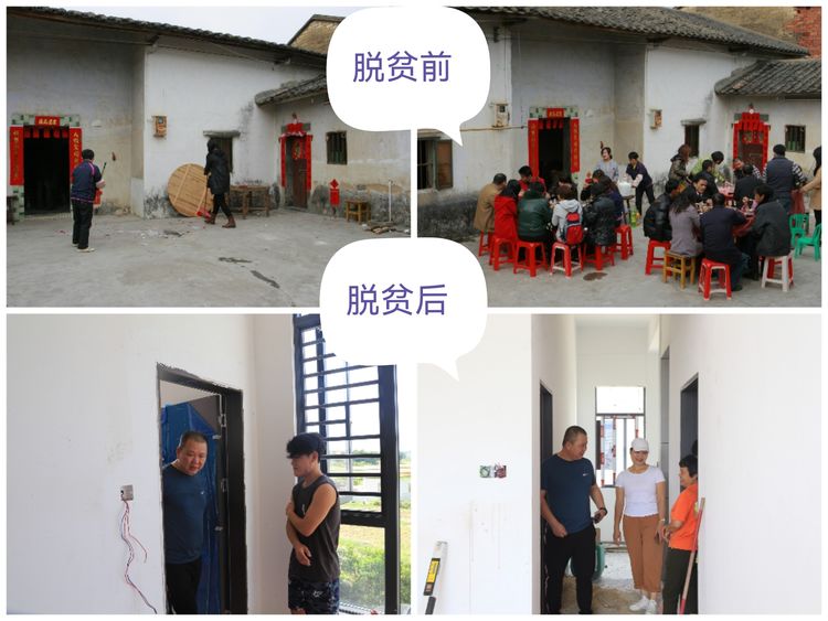 “英姐,盖起三层楼啦”黄队长竖起大拇指为英姐点赞。今天的好日子,忘不了东江义工爱心人士的帮扶。从2011年说起,东江义工黄队长在探访中了解黄伟英的遭遇,决定帮助这位单亲母亲,并与黄伟英一家结为“亲戚”。为了帮助这位“亲戚”脱贫,黄队长在一名老队员帮助下,为英姐找到了一份合适的工作,待遇也比以前好了很多。为了增加家庭收入,她除了勤劳工作,还养牛、养鸡和种田……2013年,在政府、亲友、东江义工的支持帮助下,黄伟英一家告别了泥瓦房,住进了已盖一层的水泥房。如今将原来居住的一层平房加盖了两层,共三层。“东平哥是我们全家的恩人,感谢东平哥和爱心人士的帮助,总算我有个安稳的家,再也不用担心家里漏水了”,英姐脸上洋溢着幸福的笑容说。