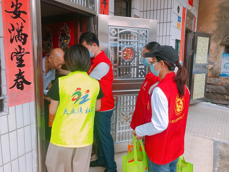 大亚湾霞涌街道上角村社工站联合上角村委会共同开展了“爱心花朵、志愿关怀”上角村重阳敬老活动,本次活动有12名志愿者及22位90岁以上高龄老人及独居老人参与。