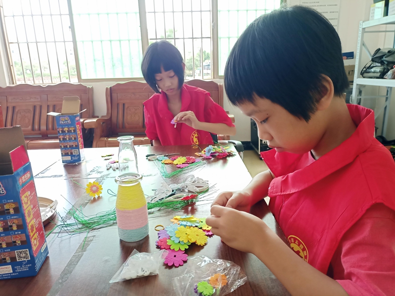 当天早上,志愿者们早早来到活动现场,在社工带领下经过一轮游戏热身和活动内容介绍后,志愿者们已迫不及待的希望快些动手制作完“爱心花朵”送给老人们。拿到花束材料包的志愿者们纷纷动手制作,从分花瓣、串花瓣、装饰花瓶、插花,每一步都非常用心投入的制作,希望老人们收到一束美美的花朵。经过志愿者们的巧手,一束束鲜艳的花朵呈现在大家眼前,看着美丽的花朵即将要送到老人们手中,志愿者们满满的成就感及期待感。当日下午,上角村委会妇联执委、上角村社工与志愿者们带上制作好的“爱心花朵”及购买的鸡蛋,一同入户探望90岁高龄老人及独居老人,探访中,一起为老年人们送上精心制作的花朵和一箱鸡蛋,一句暖心的问候及身心关怀,让老年人们十分感动,大家一起谈家常、聊现状,畅聊甚欢,老人们露出温暖的微笑并用客家方言表示:你们很有心。