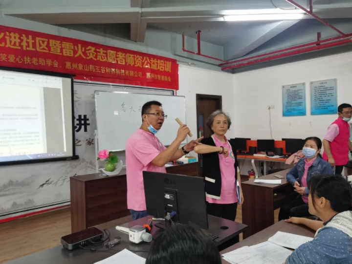 为推动中医药知识在社区的普及,保护好、发掘好、发展好、传承好中医药文化,日前,惠州市微笑爱心扶老助学会携手惠州市常德商会、惠州象山药王谷种养科技有限公司开展“中国梦·雷锋美”中医药文化进社区暨雷火灸志愿者师资公益培训。