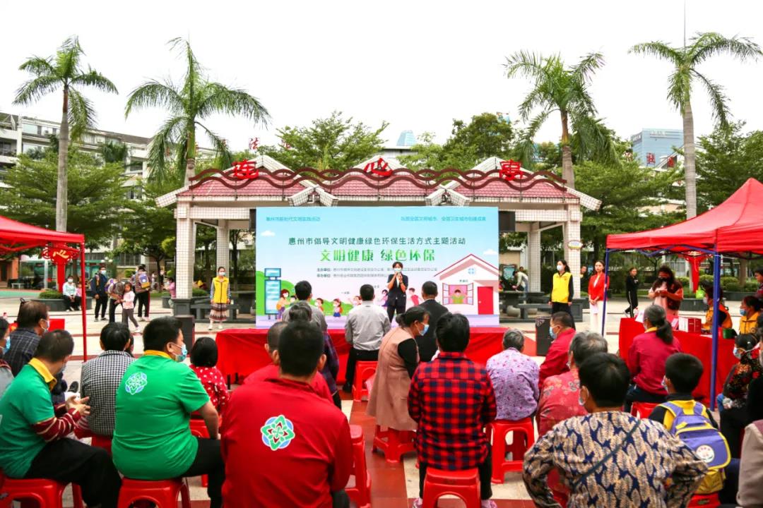 为持续深化广东省惠州市精神文明教育,大力倡导文明健康绿色环保生活方式,把新冠肺炎疫情防控期间开展的爱国卫生运动积累的好经验好做法长期坚持下去,引导全市人民培养文明行为习惯,养成健康生活方式,树立绿色环保观念。10月21日下午,一场以“文明健康 绿色环保”为主题的活动在惠城区水北新村举行,精彩丰富的节目受到了社区居民的热烈欢迎。据悉,本次活动由惠州市精神文明建设委员会办公室、惠州市爱国卫生运动委员会办公室主办,惠州报业传媒集团超网新媒体有限公司承办。