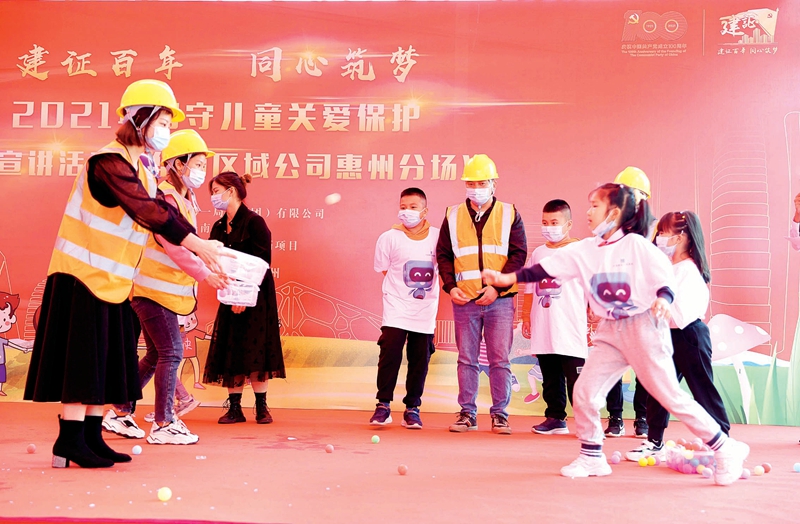 10月30日,由中建一局主办的“建证百年·同心筑梦 2021年全国农村留守儿童关爱保护百场宣讲进工地”主题活动在惠城区鹿江沥项目举行。