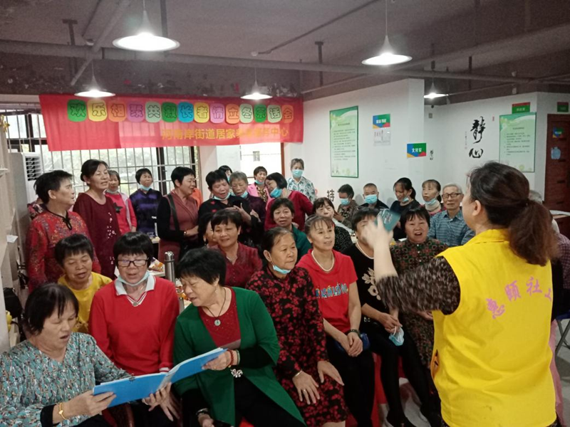 茶话会上,首先由新入职的社工向长者们作自我介绍,接着社工聆听长者们分享以往中心活动参与经验以及对中心重新开放的期盼。活动中长者们积极表现个人才艺,表演者们通过二胡演奏、讲故事、唱红歌等精彩表演,纷纷表达着最真挚和美好的祝愿。长者们一边品尝水果和点心,一边开心地聊着天,气氛温馨融洽,现场充满欢声笑语。