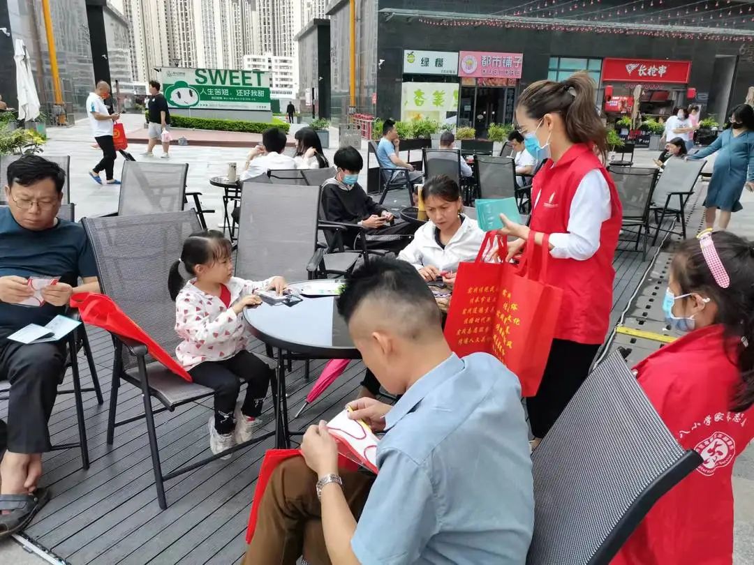 现场,身穿红马甲的志愿者们分3个组分别手持全民戴口罩宣传牌前往商城周边商铺开展“全民带口罩,齐扫场所码”助力疫情防控宣传文明行动,一组化身疫情防控“宣传员”,前往商场外围,耐心细致劝导市民在公共场所正确佩戴口罩,并为未佩戴口罩的市民免费发放口罩,提醒他们提高疫情防控意识做好防护;另外一组则到商场里面,向商场里面的市民派发《疫情防控指南》宣传册,以及引领群众参与“免费口罩文明领取”等,吸引不少市民积极参与。最后一组到天益城周边,向周边游玩的市民宣传疫情防控知识,并派发市民手册和环保手袋等。