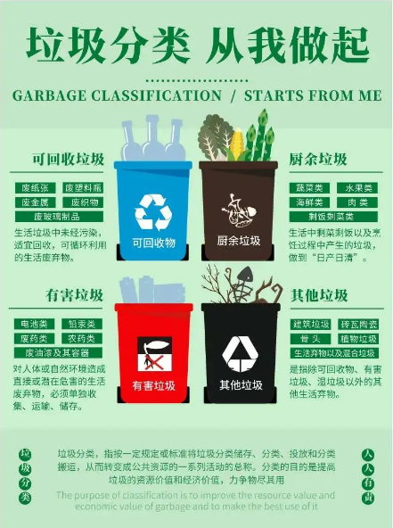 垃圾分类,一般是指按一定规定或标准将垃圾分类储存、投放和搬运,从而转变成公共资源的一系列活动的总称。垃圾分类的目的是提高垃圾的资源价值和经济价值,减少垃圾处理量和处理设备的使用,降低处理成本,减少土地资源的消耗,具有社会、经济、生态等几方面的效益。
