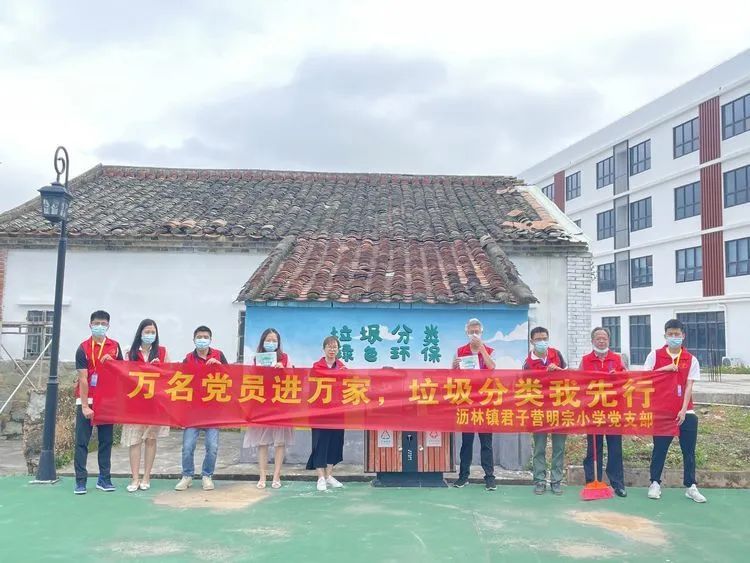 党建领航,师生接力,我们号召每一位党员教师积极引领其他同事、学生,从身边的环保小事做起、从今天做起、从我做起,自觉养成垃圾分类的好习惯,让“绿色、低碳、环保”的理念深入人心,以实际行动实践“垃圾分类”,并通过教育一个学生影响一个家庭、一个家庭带动一个社区,最终促进整个君子营村社垃圾分类工作的开展。