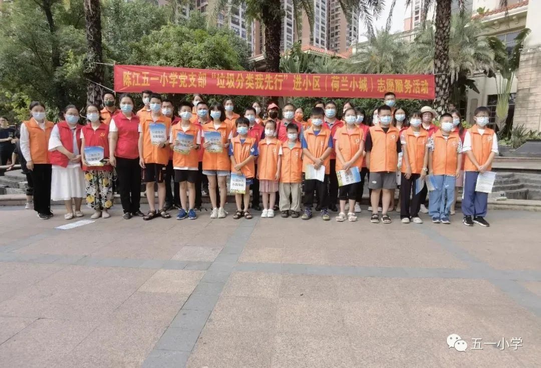 为推动垃圾分类工作的广泛开展,充分调动全民参与的积极性,让垃圾分类成为新风尚,实现“教育一个孩子,带动一个家庭,文明整个社会”的教育理念,同时提升小区业主对生活垃圾分类减量的知晓度、认同度、参与度。5月22日下午,陈江五一小学党支部精心组织支部全体党员、家长志愿者和学生志愿者共40余人到约5000户居民的荷兰小城小区深入开展“垃圾分类,我先行” 主题志愿活动,坚持“红色”党建引领“绿色”生活,不断强化我校党支部的责任意识、担当意识、表率意识,大力营造全民参与垃圾分类浓厚氛围,推动垃圾分类成为居民群众的自觉行动。
