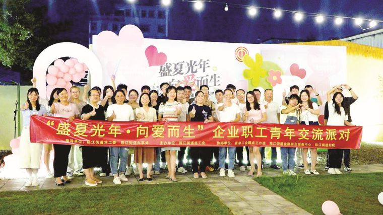 为充分发挥工会群团组织优势,为陈江街道辖区内单身青年会员搭建交友平台,8月21日晚,在七夕来临之际,陈江街道总工会携手省总工会蹲点工作组、街道党群综合服务中心、街道妇女联合会联合举办了“盛夏光年·向爱而生”联谊活动。辖区内基层工会的单身男女青年踊跃报名,惠州创维智显科技有限公司、德赛电子、惠州海格科技股份有限公司等各大中型企业的优秀青年60余人参加活动。