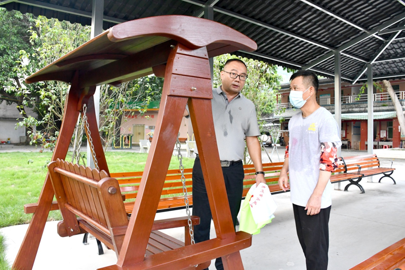 2021年9月11日下午,惠州市长风志愿服务队胡枫队长携部分志愿者,联合惠州市志愿服务联合会、广东达伦律师事务所、民革惠城区总支到三栋镇敬老院开展中秋慰问活动。为敬老院的老人们送去了成人纸尿裤、毛巾、袜子等生活用品;鲜鸡蛋、面条、大米、牛奶、柚子、苹果、蛋糕、月饼等食品;长风志愿者服务队志愿者广东极木木业科技有限公司黄道好还为敬老院赠送了双人木制秋千椅,现场安装好之后,两名敬老院的老人坐在秋千上随风缓荡,脸上也随之绽开了灿烂的笑容。