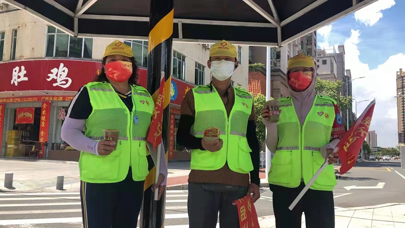 行走在惠阳淡水,人们发现,在重要交通路口,每天早中晚出行高峰时段,总能看到交通志愿者们忙碌的身影。每天中午时段,人们还发现有另一批志愿者提着绿豆糖水等食物,为交通志愿者提供能量补给。这些食物是社会爱心人士捐赠的,发起此项爱心活动的是水滴户外公益的志愿者。“一群人,感召一群人;一群人,感动一座城。”这种爱心接力、志愿同行的举动成为惠阳街头一道靓丽的风景。