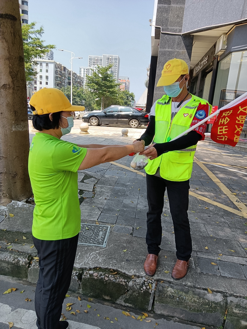 “今年9月初以来,我在路口收到了志愿者送来的解暑饮品、充饥食物,真是解了我燃眉之急。”伍美莲开心地说。