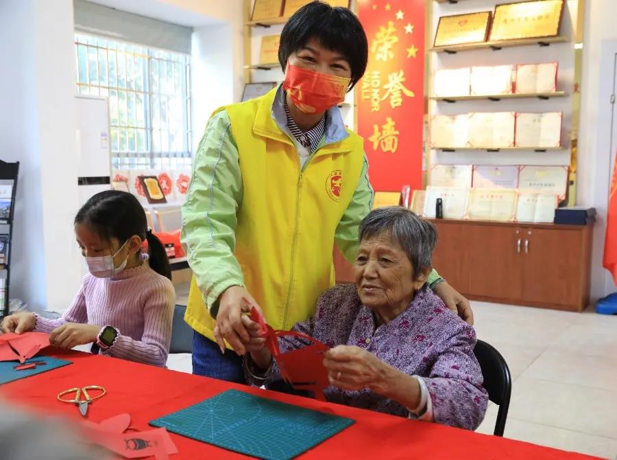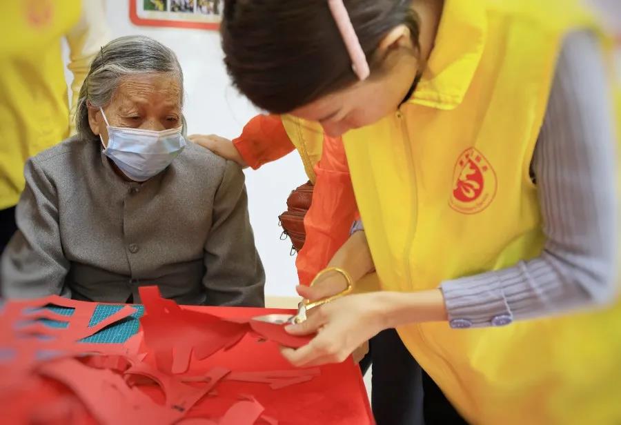 小小剪纸,看似简单却包含温情的祝福,特别是通过志愿者和老人心与心之间的交流互动,让老人们感受到了浓浓亲情。