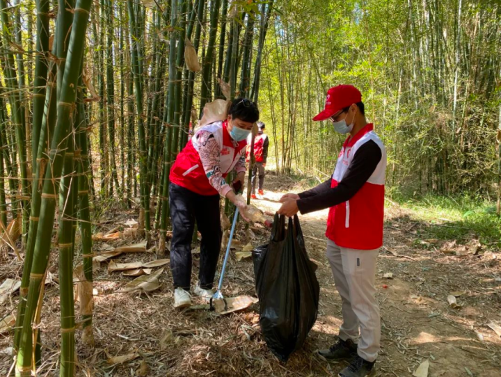 一路上,志愿者们手持垃圾钳,将目光所及的塑料瓶、塑料袋、玻璃瓶等各种垃圾通通“收入囊中”,打包“抬”走,进行分类后统一放置至垃圾回收站。看到重回整洁干净的竹林、河滩,大家忍不住纷纷拍照留念。