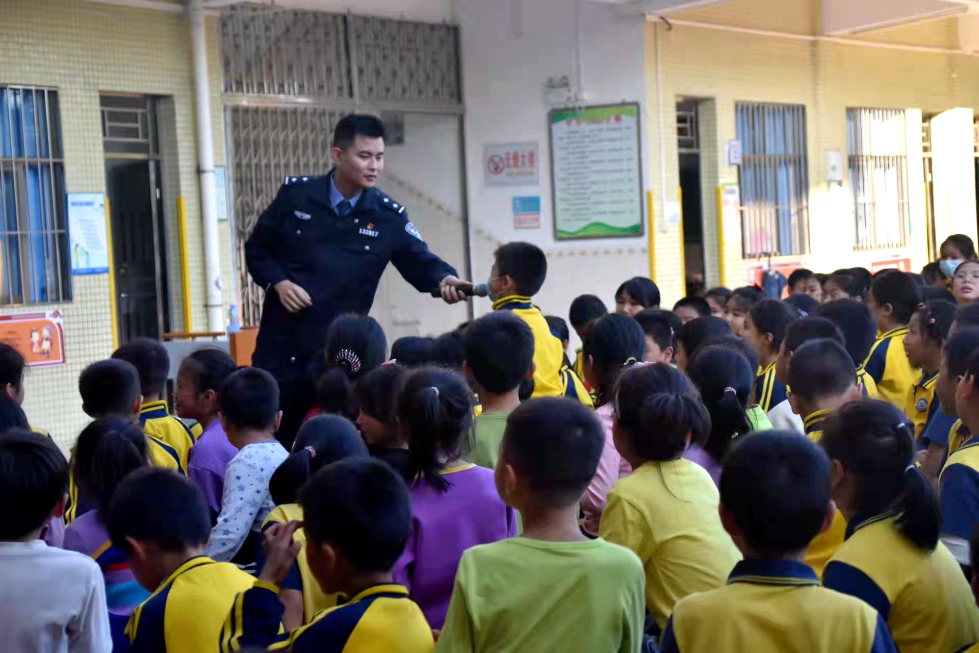 下课铃一响,惠阳区镇隆镇联溪小学300多名学生兴冲冲地带着凳子来到操场上,等待古叔叔的到来。学生们口中的“古叔叔”,是镇隆派出所的一位民警,也是该校的法治副校长古镇维。近日,他来到联溪小学给同学们上法治课,给大家讲解“社会生活的百科全书”民法典。
