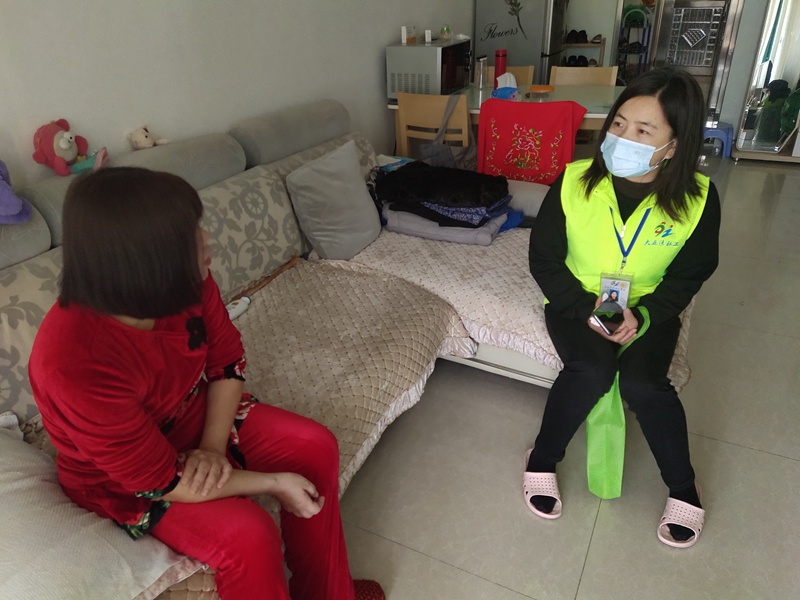 社工走访特殊群体提醒做好防寒措施。