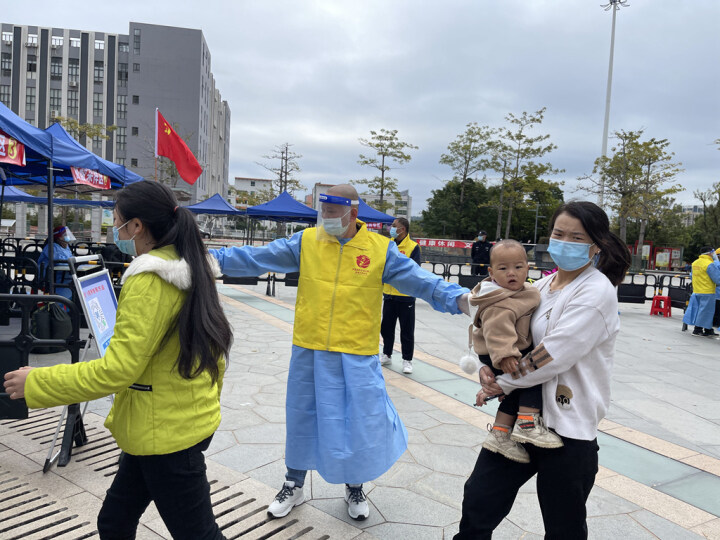 “你好,请规范佩戴口罩”“你好,请出示你的粤康码和行程卡”“你好,请前后保持一米距离”“你好,请问有什么能够帮到你的”……志愿者们一遍又一遍地询问、提醒市民做好防护、配合检测。对未按要求佩戴口罩、聚集扎堆等不符合疫情防控要求的行为,志愿者们及时进行提醒和纠正,最大程度保障了核酸检测顺利进行。