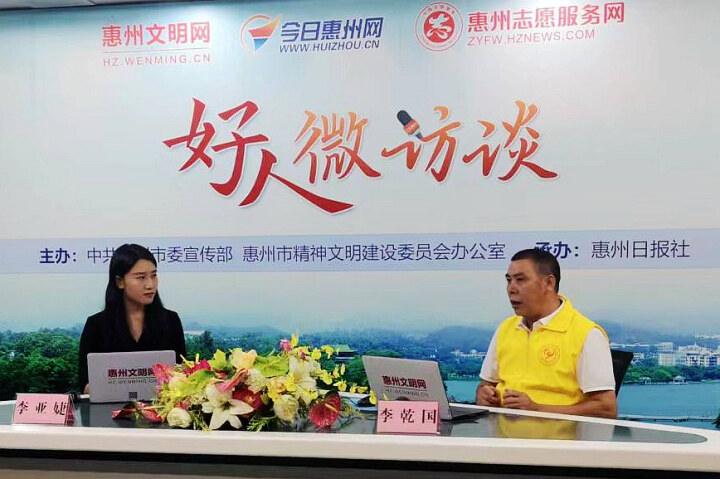 8月24日下午,由中共惠州市委宣传部,惠州市精神文明建设委员会办公室主办,惠州日报社承办的“紧跟总书记 传播真善美”好人微访谈开播,邀请到“中国好人”、惠东县爱心群志愿协会会长李乾国给网友作交流分享。