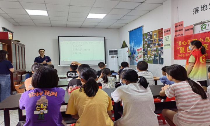 为帮助社区儿童特别是留守儿童体会阅读快乐,帮助他们树立良好阅读习惯,志愿服务队在望京洲村社工站举办儿童“夏日创享共成长”能力提升小组活动。活动现场共30余名学生参加了活动,老师通过分享一个个生动有趣的故事,引导学生从“阅读”到“悦读”,感受学习的快乐,体验成长的乐趣,不断提升自我阅读品位,提高阅读兴趣和表达能力。