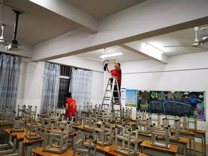 “安装电灯、清除杂草、大扫除等等,我们也会做。”梁朝锐介绍,为给学生提供一个干净、卫生、舒适的学习环境和校园环境,英光小学志愿者会定期开展校园大扫除,针对校园杂草、教室卫生等进行清洁。开学前期,还会对各班的桌椅进行调配,在不同楼层之间来回搬运。当需要更换电灯的时候,第一时间也是看到了志愿者的身影,为此他们还有一个称号“校园蜘蛛人”。
