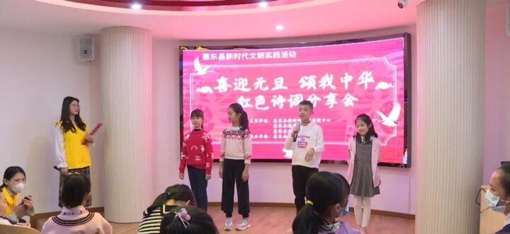 为感悟革命先辈的家国情怀,大力培育和弘扬民族精神,传承红色基因,进一步陶冶学生的艺术情操和丰富课余生活。1月3日,惠东县新时代文明实践中心、县志愿服务总队和县文明办在惠东县新时代文明实践中心开展了惠东县新时代文明实践系列活动“喜迎元旦 颂我中华”红色诗词分享会。