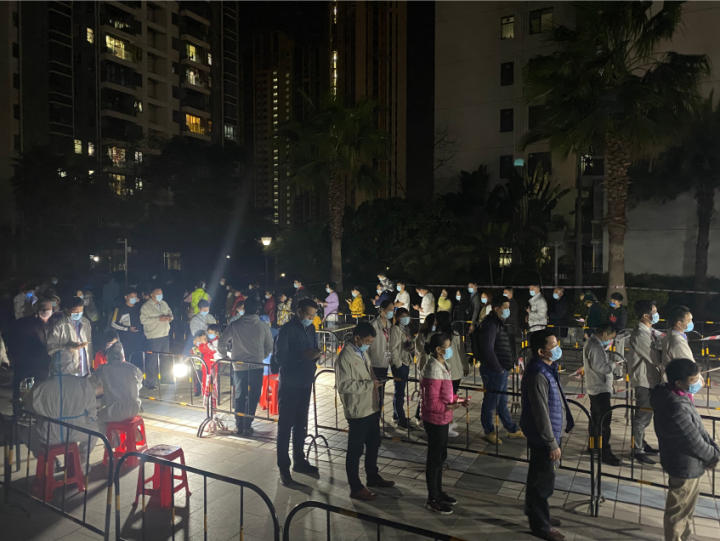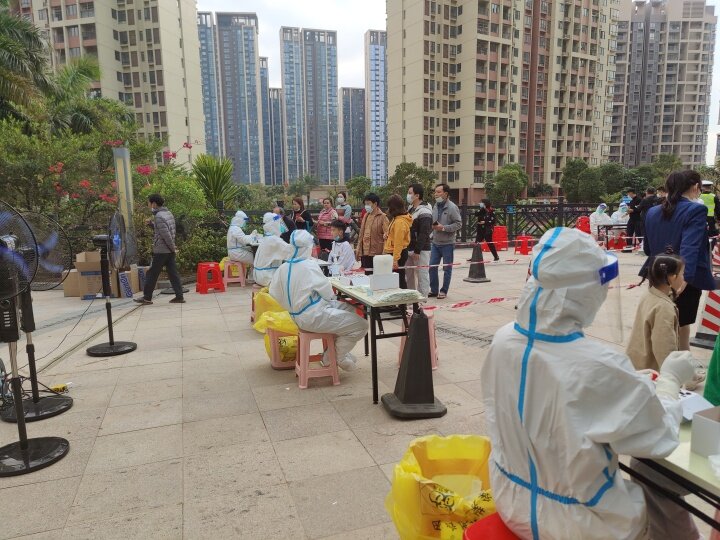 为保障采样工作顺利开展,大亚湾区从各部门、各社区抽调多名党员干部和工作人员投入到这场“战疫”中。在大亚湾区各个采样点,可以看到,全副武装的医护人员忙个不停,一丝不苟地做好采样工作,而公安民警、党员干部、志愿者、网格员、社区工作人员也是日夜兼程,忙碌着维护现场秩序,引导市民有序排队,保持1米距离,并提前生成“葵花码”。在这场没有硝烟的战场中,全体市民也是积极配合,自觉遵守每一项防疫措施,确保采样工作快速、有序、平稳进行。