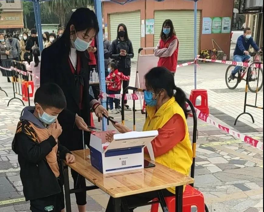 为积极防范疫情输入风险,切实保障居民健康安全,根据周边地市疫情防控形势,2022年1月9日,惠州市仲恺高新区潼侨镇在全镇范围内开展大规模核酸检测工作,该镇共设置10个大规模采样点。为保障新冠疫苗接种工作有序进行,仲恺高新区志愿者们响应号召积极支援,第一时间到达核酸检测点,与医护人员和社区工作人员并肩战斗,全力开展全员核酸检测采样工作,牢牢筑起一道坚固的疫情防控屏障。