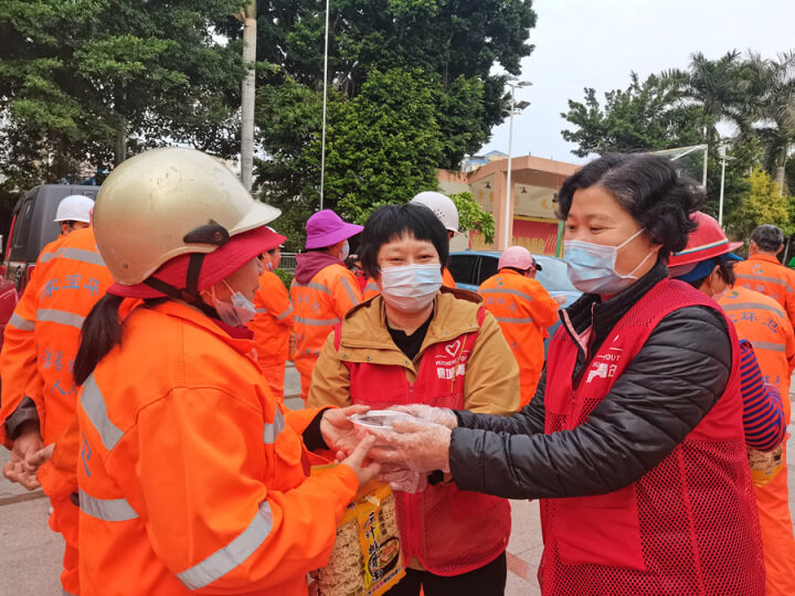 1月10日是腊八节,腊八粥飘香,当日上午,义家人河南岸志愿服务队开展“腊八暖人心,浓浓社区爱”腊八节活动,给惠城区河南岸街道辖区的环卫工人、部分社区居民、医护人员、志愿者送去腊八爱心粥和温暖面条。